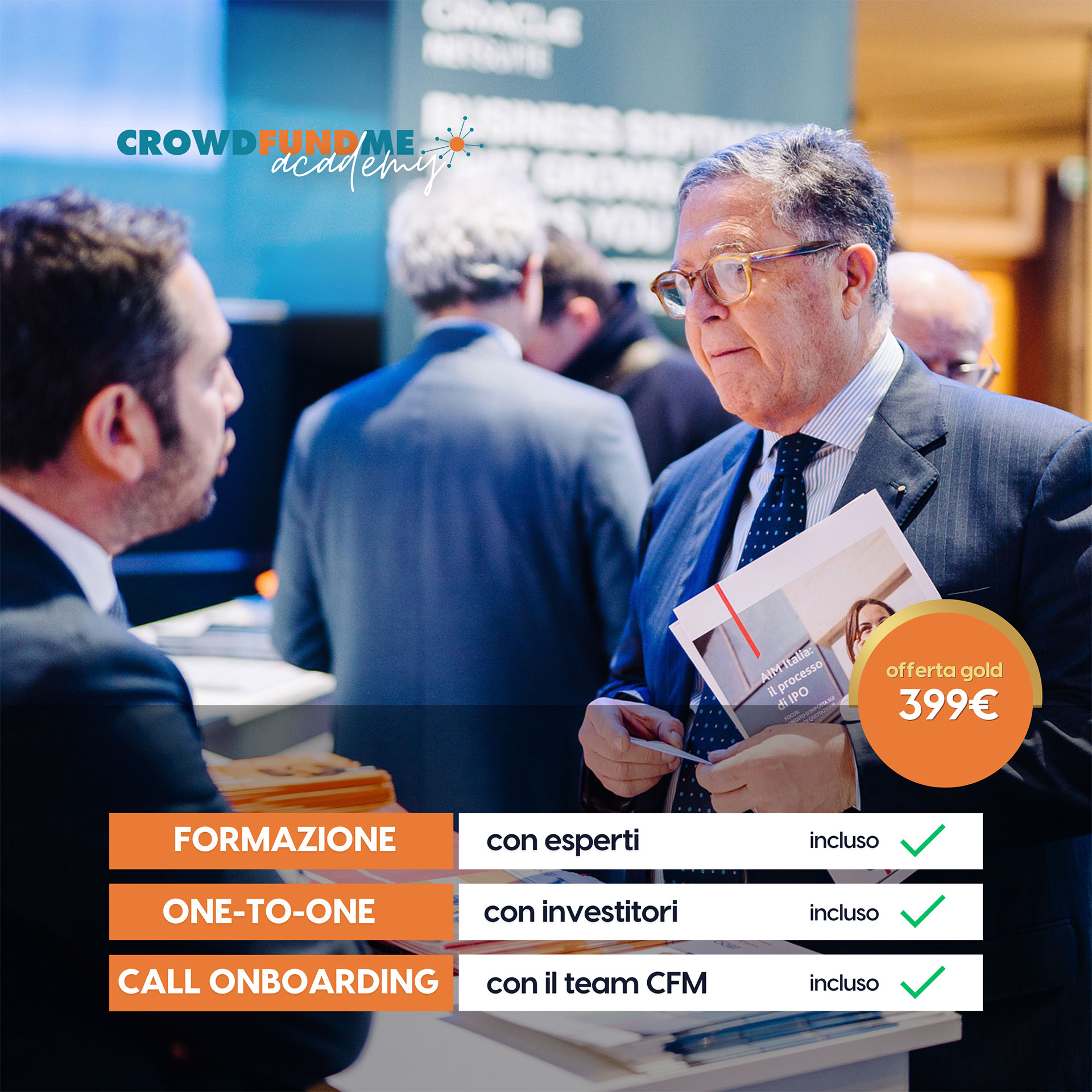 Acquistando il pacchetto completo della CrowdFundMe Academy, avrai la possibilità di incontrare 10 Business Angel e parlare con loro della tua idea di business.